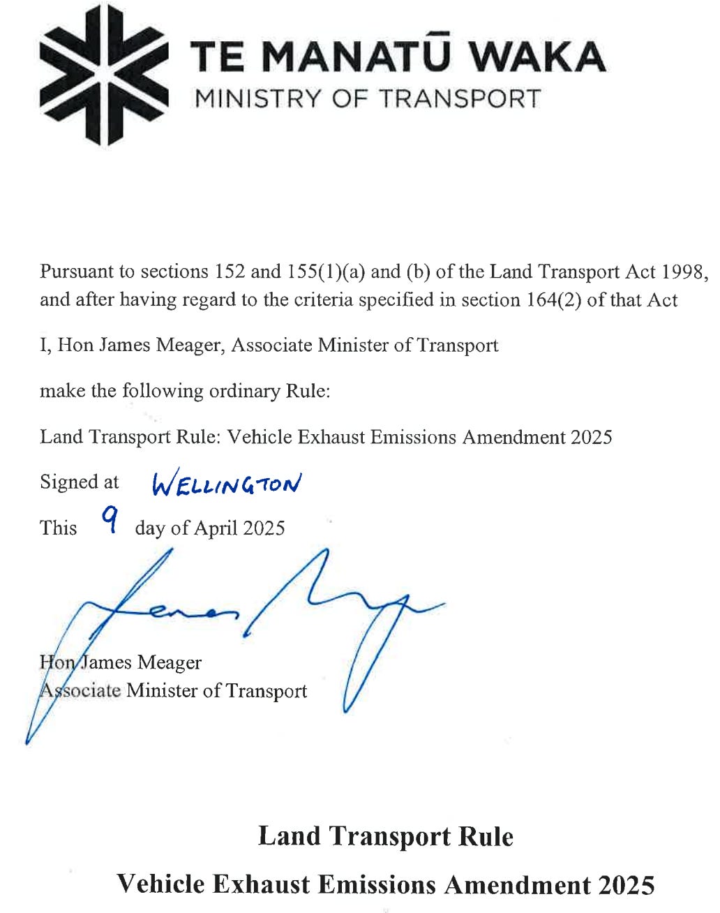 To my surprise yesterday I found that Nationals James Meager signed a Land Transport Rule amendment in April this year.